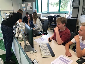 Die Teilnehmerinnen und Teilnehmer erhielten zunächst einen Überblick über die Roboterforschung und erarbeiteten sich anschließend die Bauweise und inneren Funktionen von Robotern, indem sie selbst in Kleingruppen an Robotersimulationen arbeiteten. So versuchten die Teilnehmerinnen und Teilnehmer den Robotern der Nao Devils Dortmund einen neuen Kick für das RoboCup Team beizubringen. Am Ende konnten die Schüsse sogar an echten Robotern getestet werden.