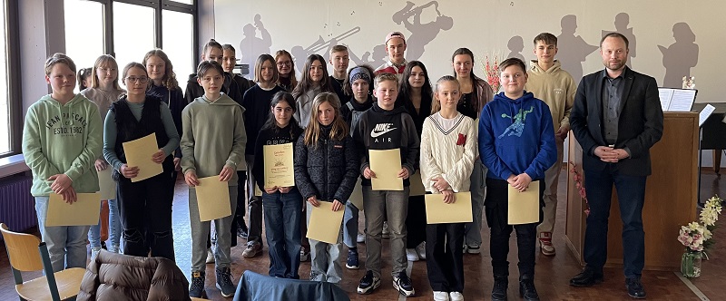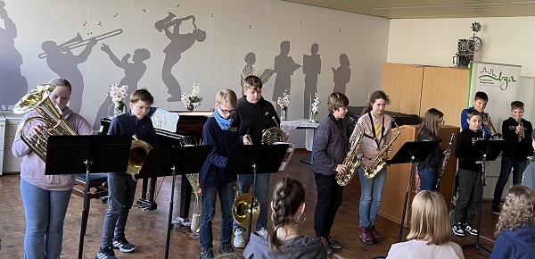Für den musikalischen Ausklang sorgte die Bläserklasse der Jahrgangsstufe 6, mit einem Arrangement der „Ode an die Freude“ – passend zum freudigen Anlass und dem Charakter der Europaschule Burggymnasium.
